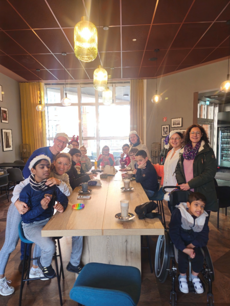 Nach dem Abholen wurden wir noch in das schöne Café der AXA eingeladen. Dort bekam jede und jeder von uns ein Getränk, außerdem gab es Spekulatius und Kekse. Das hat uns sehr gefreut und war eine tolle Pause in der hektischen Vorweihnachtszeit. Zurück in der Schule haben wir die Geschenke in die einzelnen Klassen verteilt. Es war schön zu sehen, wie sehr sich alle über ihre Weihnachtsgeschenke gefreut haben.